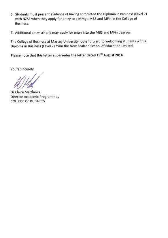 盈科留學新疆分公司獲得新西蘭梅西大學專升碩項目的授權書